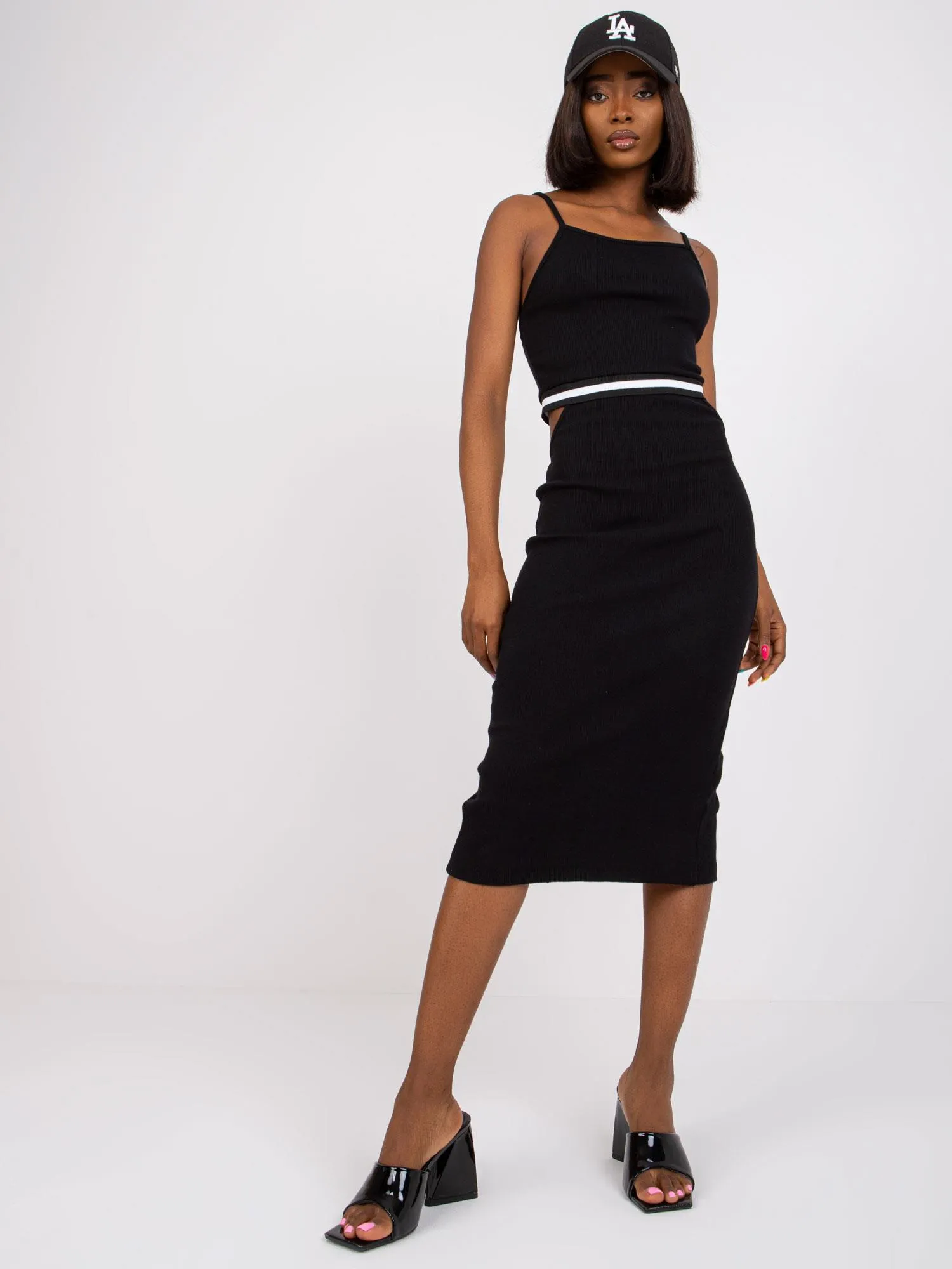 Czarna prążkowana sukienka midi Giorgia