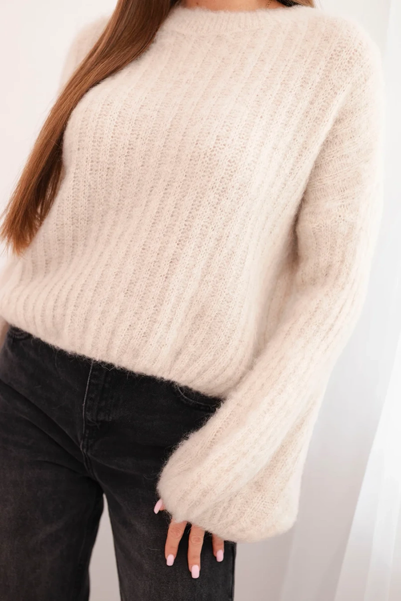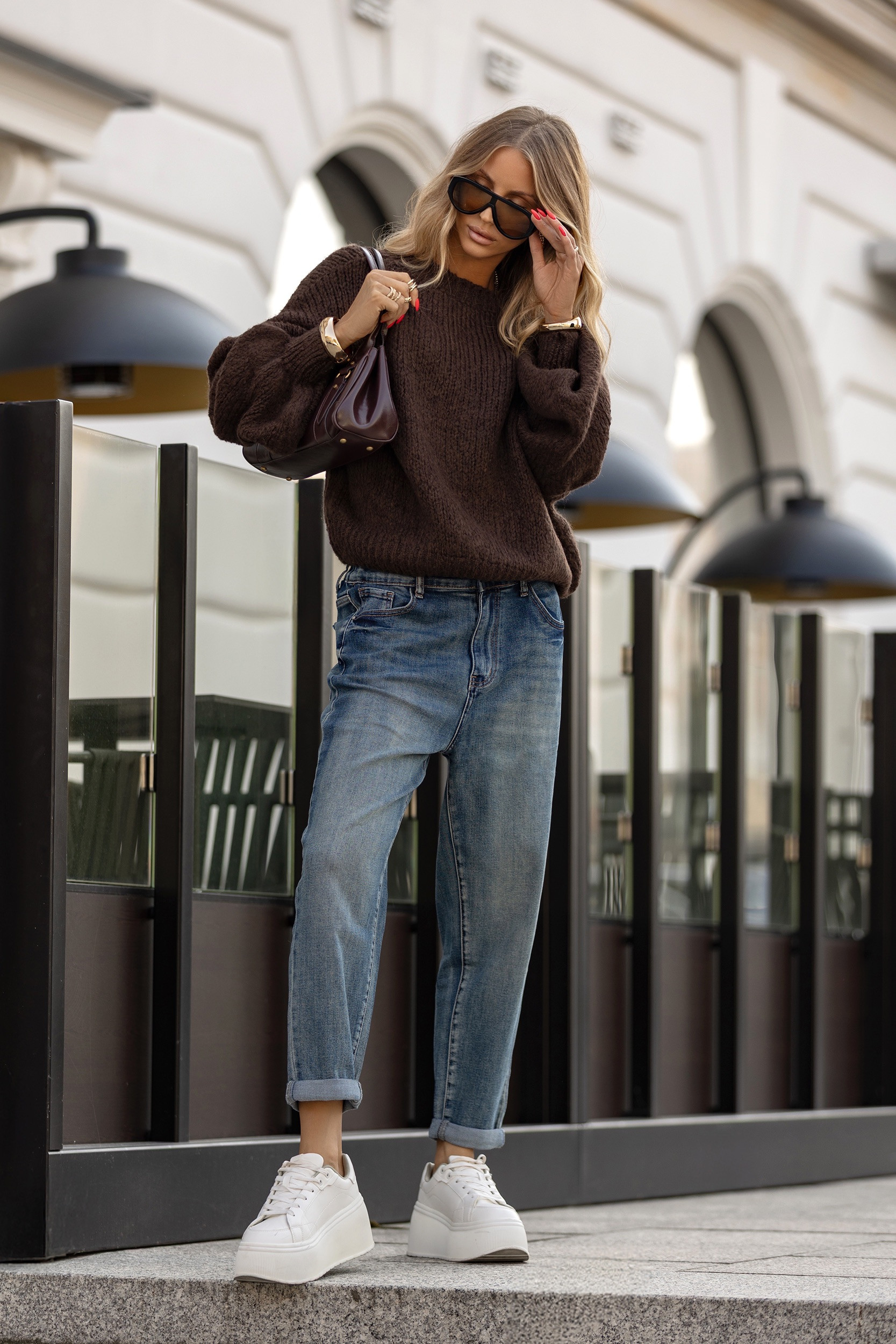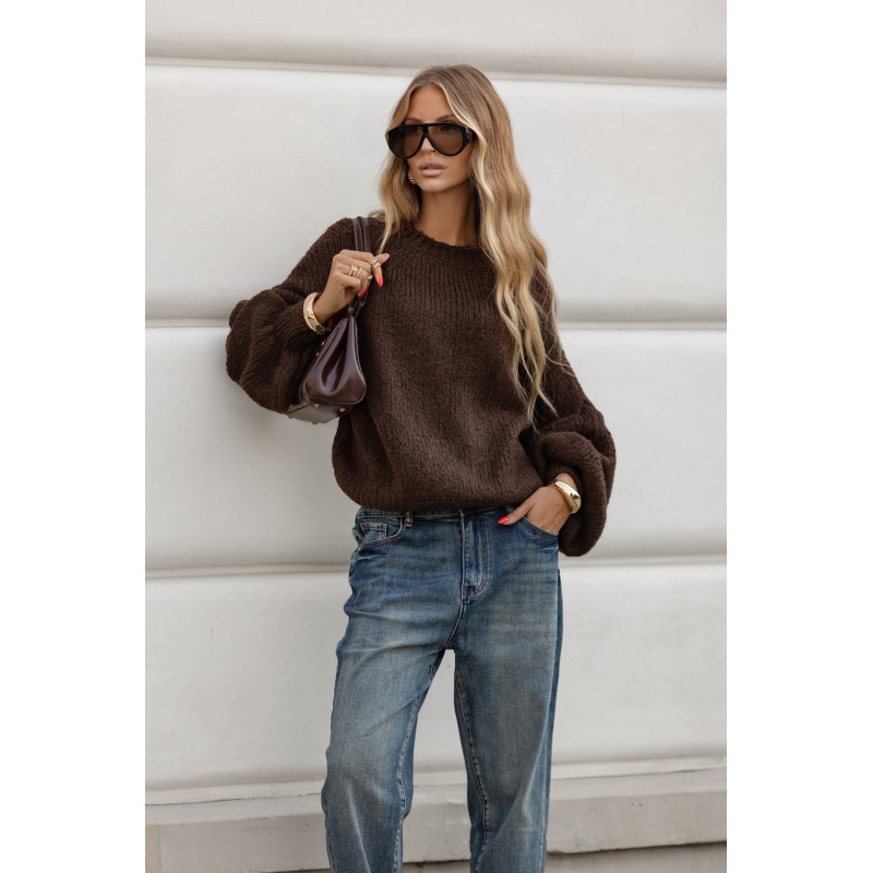 Model posiada długi rękaw ozdobiony guzikami oraz klasyczny golf, który zapewnia ciepło w chłodniejsze dni, a jednocześnie prezentuje się elegancko i kobieco. To idealna baza zarówno do codziennych, jak i biurowych stylizacji – pasuje do spódnic, jeansów czy eleganckich spodni.