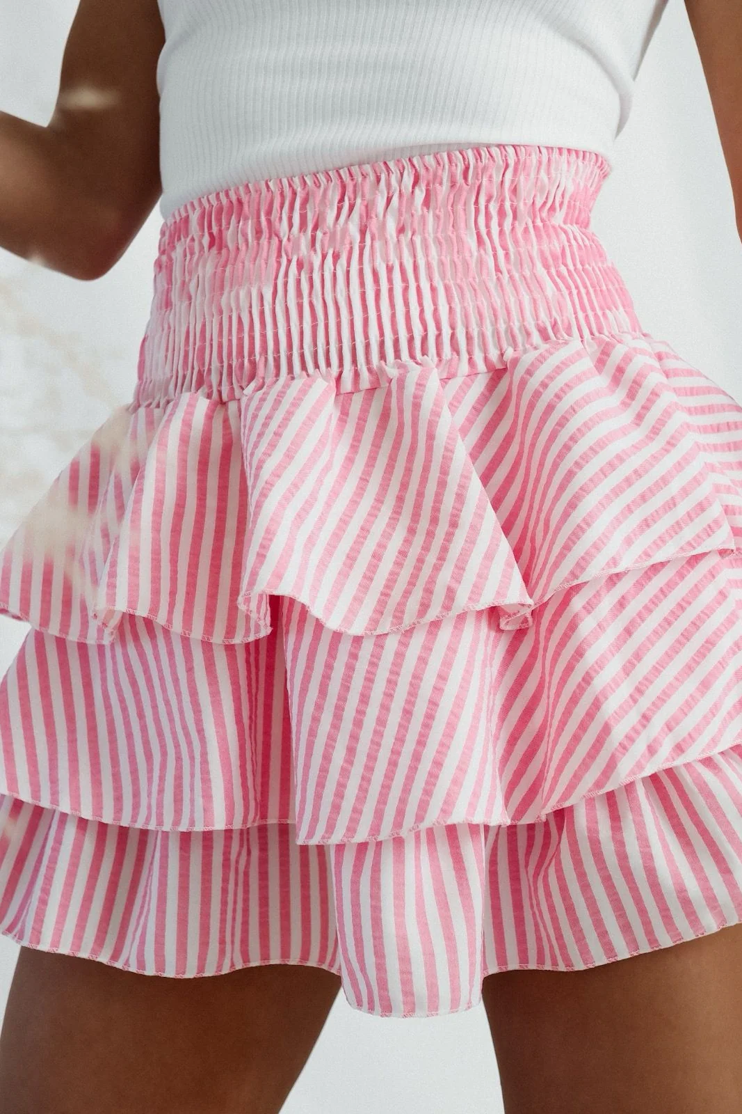 Spódniczka falbany – biało różowa to idealny wybór dla kobiet, które szukają połączenia wygody i stylu. Gładka tkanina z bawełny zapewnia komfort noszenia, a elastyczna gumka w pasie doskonale podkreśla talię. Rozkloszowany fason i falbany na dole dodają sukience kobiecego szyku, a mini długość sprawia, że jest ona modna i wygodna.